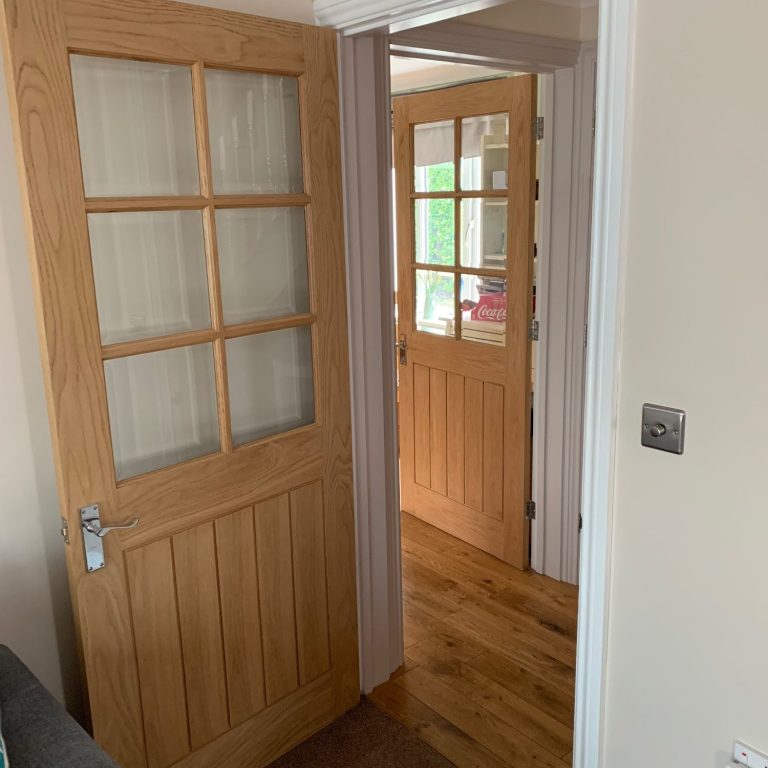 Oak and vinyl plank installation.